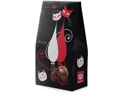 čokoládové pralinky plněné lískooříškovým krémemBonboniéra s moderním designem koček skrývá jemné italské čokoládové pralinky.